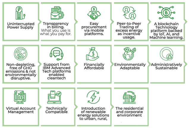 Our business idea is to provide easy and flexible access to clean and uninterrupted energy for everyone including the underserved in Africa using digital technology. Our Model includes providing incentives for those who embrace this new reality that will transform modern Africa society in line with the SDG goals while providing massive employment to young Africans. Presently, we are creating a blockchain technology platform that delivers tokenized services and products enabled by blockchain architecture and backed by IoT & AI